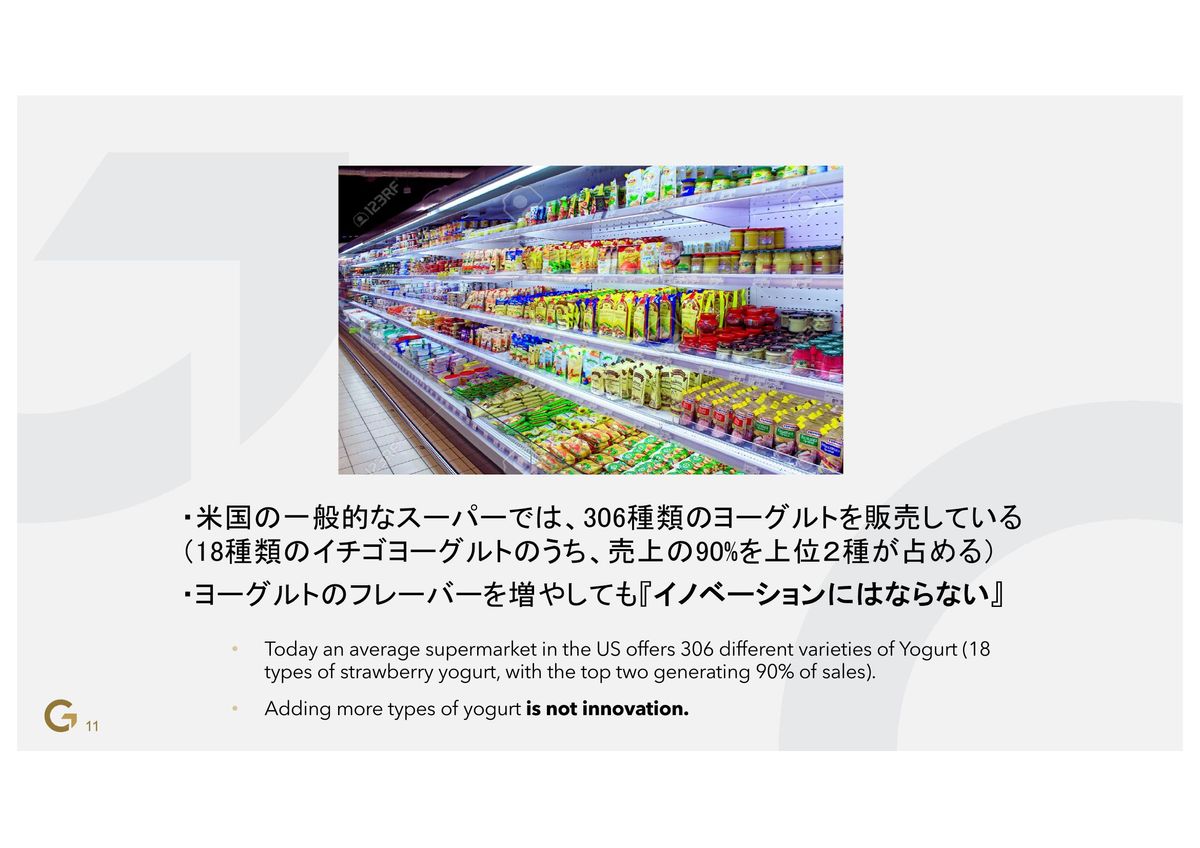 2021年のウォールストリートジャーナルによると、米国のスーパーにはヨーグルトが306種類あるそうです。しかし、もう1つ種類を増やしてもイノベーションにはなりませんよね。改善にはなっても新たな能力をもたらしてはいません。