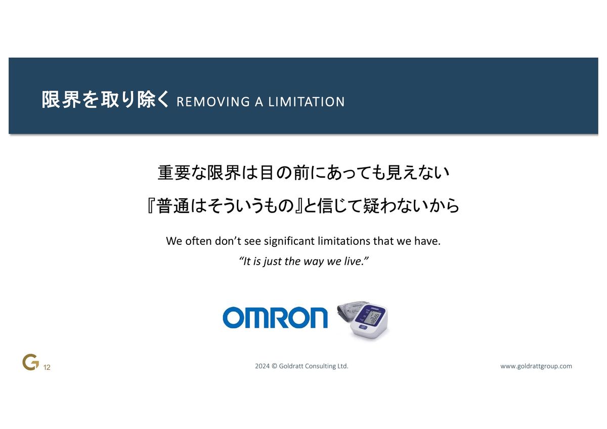 例を挙げましょう。オムロン ヘルスケアという会社があります。同社は画期的な製品を開発し、8億ドル企業へと成長しました。自宅で血圧を測定できる血圧計を創り出したのです。人々のもつ重要な「限界」を取り除くことで、このイノベーションは大ヒットしました。