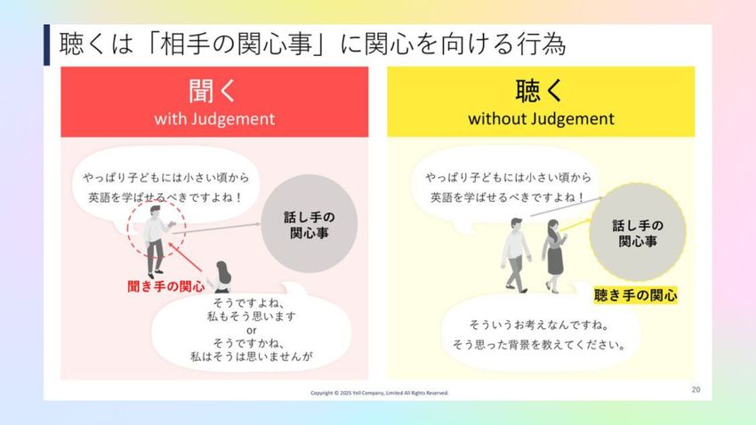 なぜなら、聴いてもらえたって感じるかどうかは相手次第で、こっちは本当はわからないんですよ。特にその場では。自分は聴くことを心がけたなとは思うけど、それを相手がどう受け取ったのかは、相手さまが判断することなんですよね。