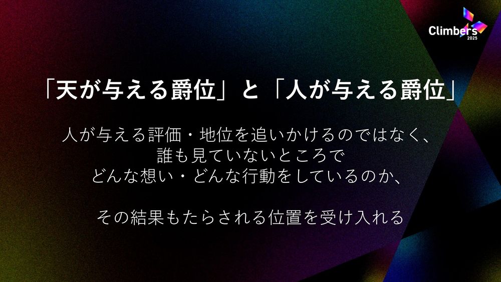 池田:でも、天が与える爵位は何かと言ったら、すごくシンプルに言えば、「いや結局、自分自身がやっていることにふさわしい場所に行き着くから」ということなんですね。自分自身が思いを持って取り組んだとしても、理解されるかもしれないし、理解されないかもしれない。それはわからないけども、自分自身が思っていることにふさわしい場所に、人生は最後にたどり着きますよという。