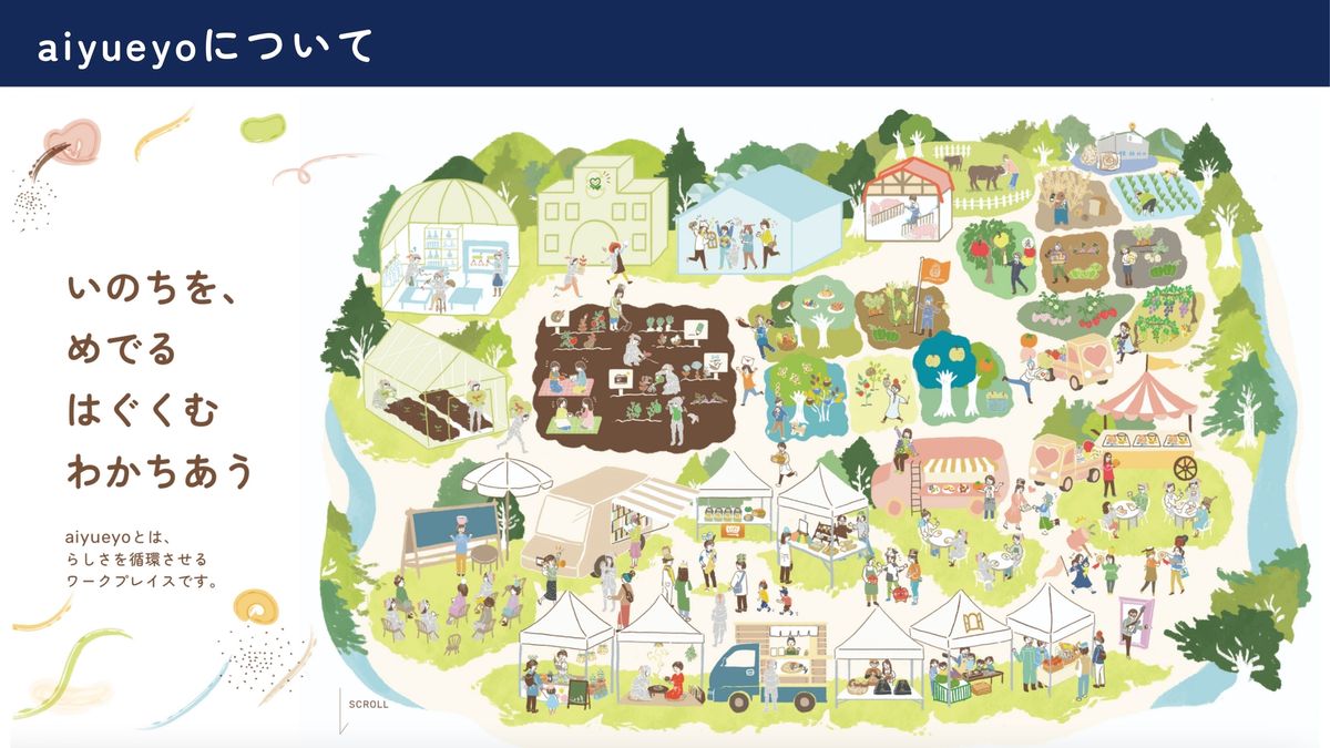 (スライドを示して)こちらが「aiyueyo」になっています。ホームページを見ていただくと、この「aiyueyo」のビジュアルが1番前にどーんと出てきます。「いのちを、めでる・はぐくむ・わかちあう」という言葉を前に出しているコミュニティになっています。