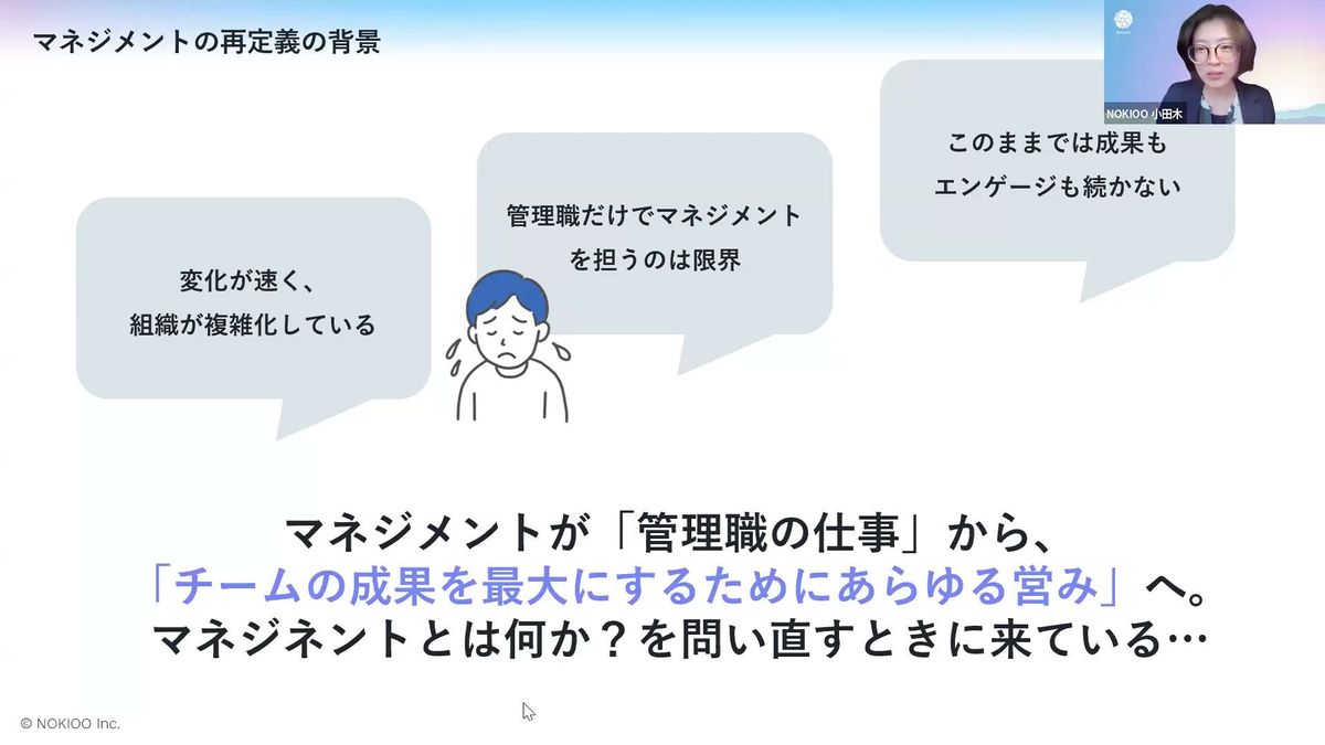 伊達:このマネジメントの定義自体は、実は「全員マネジメント」の定義と同じなんです。一方で違ってくるのが、やっぱり「誰がそれを担うのか」という部分が、今アップデートを求められているのかなと考えています。