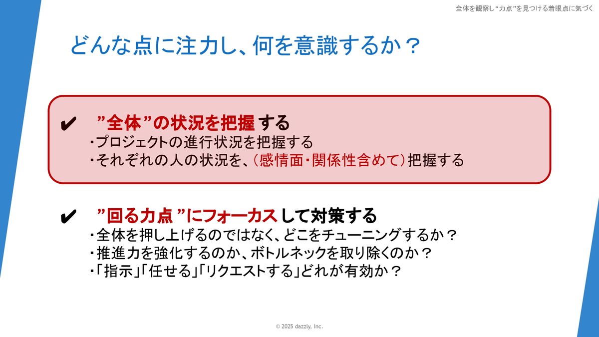 この章の中では、状況を観察して力点を見つけ、着眼点に気づくところをゴールにしながらお伝えできればと思います。