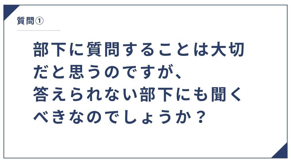橋本:はい。部下に質問することは大切だと思うのですが、中には答えられない部下もいると思うんですよね。ということで、「答えられない部下にも質問をしていくべきなんでしょうか?」という問いです。英さん、いかがですか?