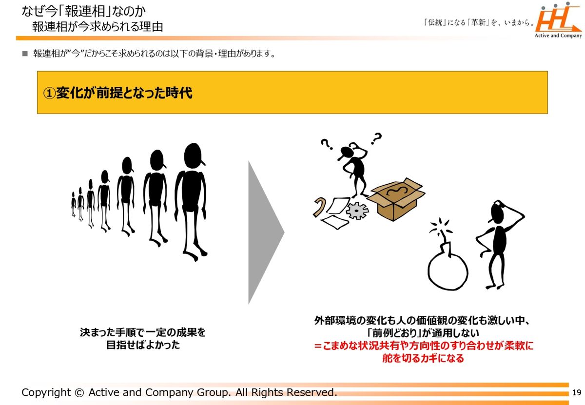 「じゃあ、なぜ今、報連相が必要なんですか?」というところで、今だからこそ求められるのって、変化が前提になった時代だからっていうのがあると思うんですよね。