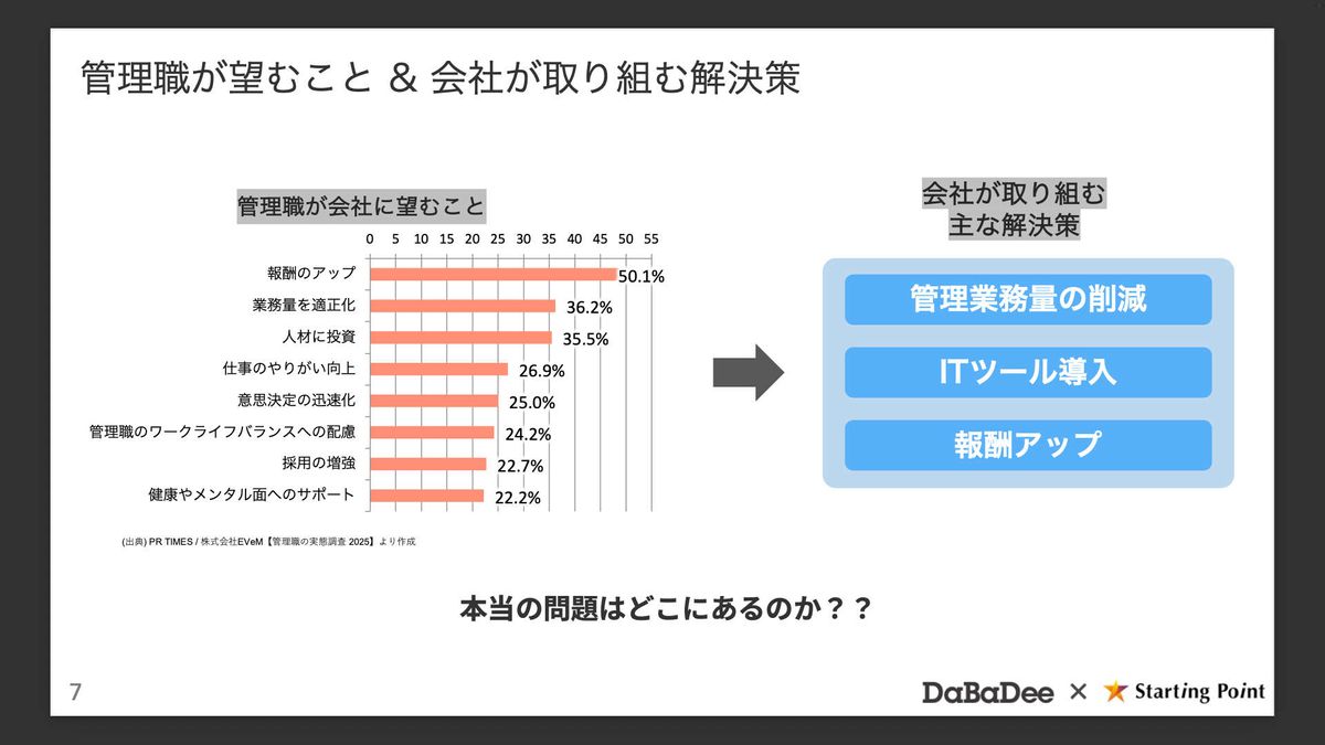 こうした声を受け、企業は主に「管理業務の業務量削減」「ITツールの導入」「管理職の報酬アップ」の3つに取り組んでいます。本セミナーでは、これらの解決策を深掘りする前に、なぜ管理職を望まないのかという問題の本質をさらに探っていきたいと思います。