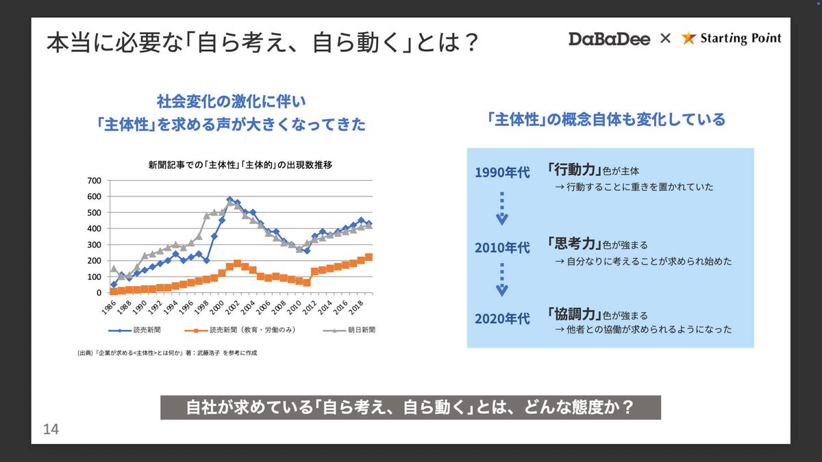そこでみなさんにあらためて考えていただきたいのは、自社で求められている「自ら考え、自ら動く」とはどのような態度なのかを定義し、見直すことの重要性です。