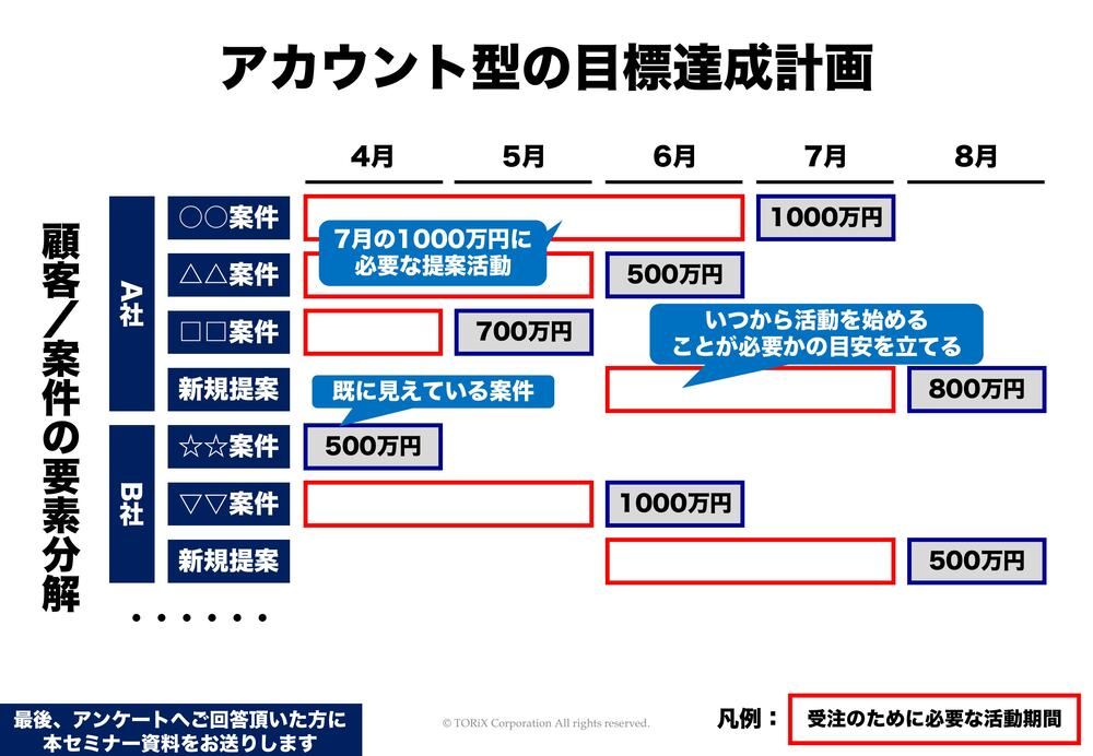 そうすると、「この案件はすでに見えているよね」とか「この案件を作るためにこういう活動が必要だよね」というふうに、それぞれ個別的な活動計画になるわけです。