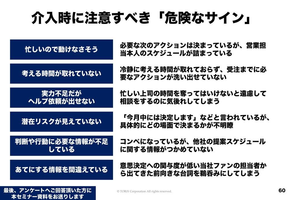 人の一覧を見て、どういうふうに人に対して介入をしていくか。そして商談一覧を見て、どういうふうに介入をしていくか。そして介入の時はどこまで突っ込んで確認をするべきかといったことをお話をしてまいりました。