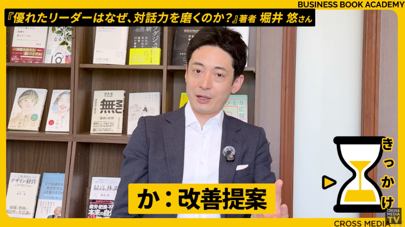 堀井:まず、下の入り口が「か」ですね。改善提案。つまり、まだ具体策じゃなくてざっくりとした状態でかまわないので、「何がどうなったらみんながハッピーなゴールなの?」という改善提案。