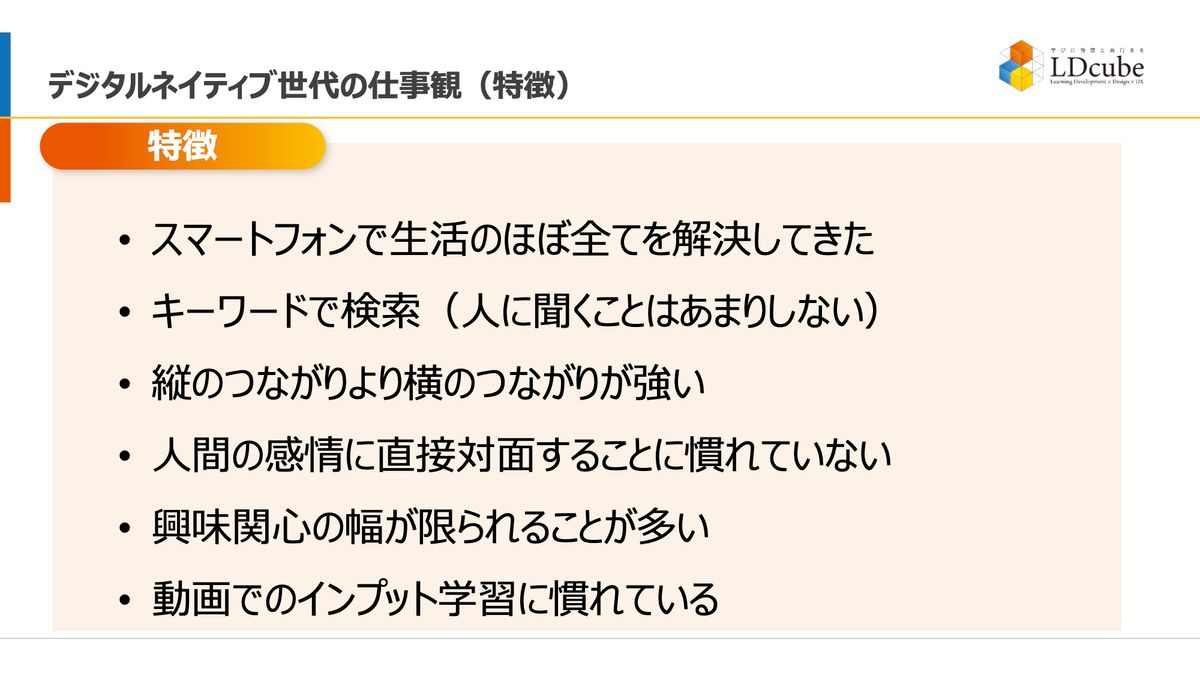 ・高野氏の分析では、Z世代は堅実な仕事観を持つ一方で対面コミュニケーションに不慣れで、人に質問することにも遠慮する特徴が見られます。