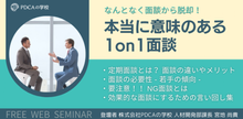 なので、1on1などのいわゆる定期面談は、どちらかというと部下の能力を高めるとか、課題解決に導くとか、最近の状況をヒアリングして適切にフィードバックをするとか、目標の進捗を確認するといったように、あくまで育成の観点が強いのが定期面談です。