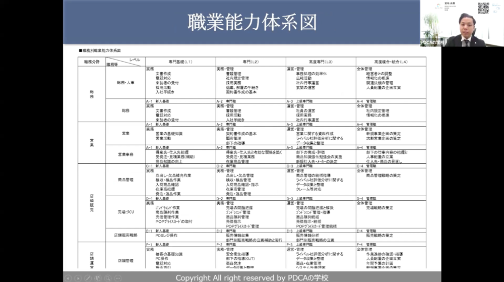 確か従業員数が一定を超えている企業さまだと、職業能力体系図や教育体系図とか、個票と言われるものは、マストで作らないといけないという話もありました。なので、まだ作られていないという企業さまは、ぜひ整備をしていただければなと思っています。