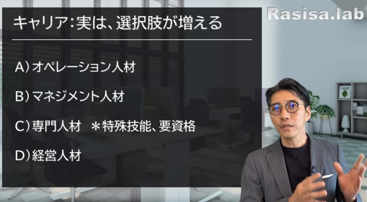 オペレーション人材はこう考えてください。まず年齢と共に厳しくなることと、あとお給料が上がりにくい圧力があるということです。