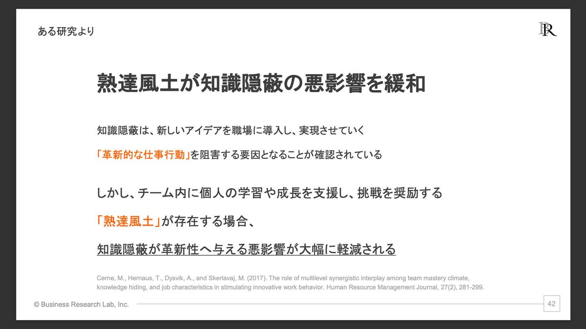 ただし、ここで注目すべきポイントがあります。個人の学習や成長を重んじる「熟達風土」が職場にある場合、知識隠蔽の負の影響は大幅に軽減されることがわかっています。
