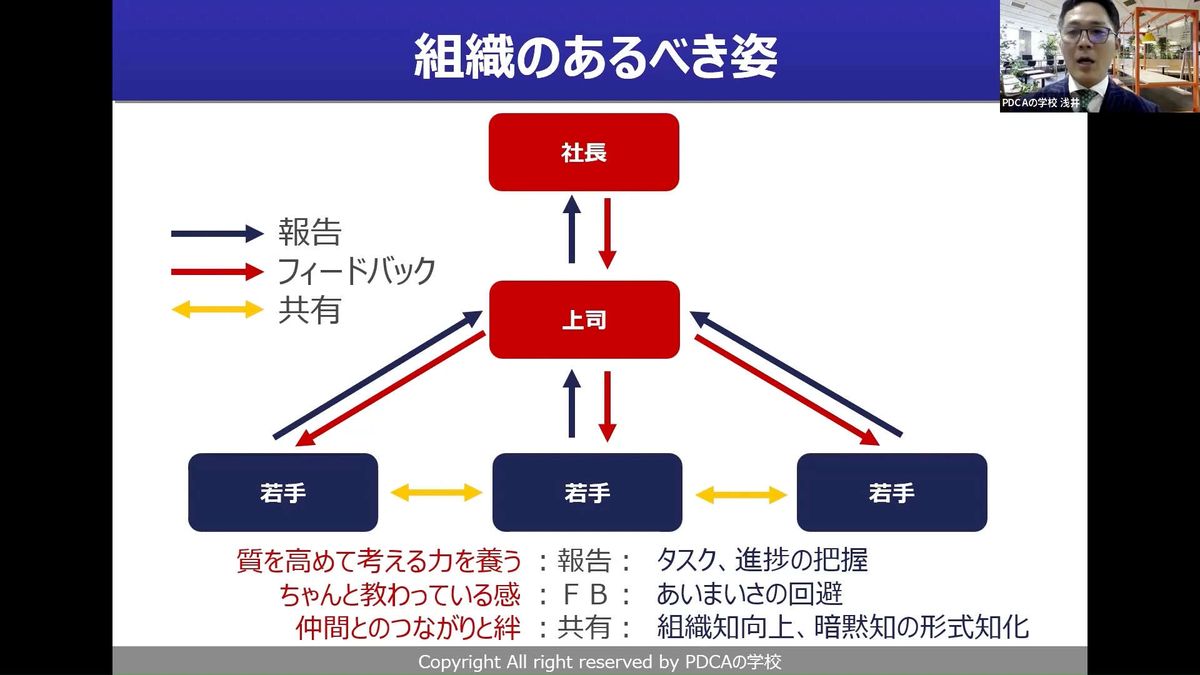 そして最後に強調したいのは、「管理職だから任せた」ではなく、管理職が何をしているのかを社長や経営幹部が報告を受け、さらに「来月はこういう方針で、具体的にこういうことをやってください」とフィードバックを返す。このやり取りを仕組み化することこそ、組織のあるべき姿だと思います。