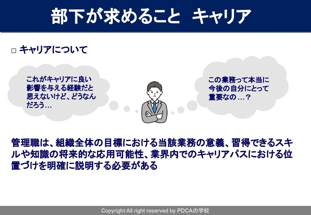 そうした時に、従業員のキャリアを作っていくのも会社の責任にもなっていますし、会社に代わって日頃指導をする管理職が、部下のキャリアを作っていくのもやはり責任になっているんですね。