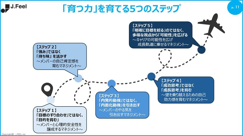 そうでない人たちにはけっこう難しさを感じているなと思っています。そういった人たちが自分から主体的にチャレンジして試行錯誤をしながら成長していけるような、育つ力みたいなものをマネージャーのみなさんが育てていくところが必要だと思っています。