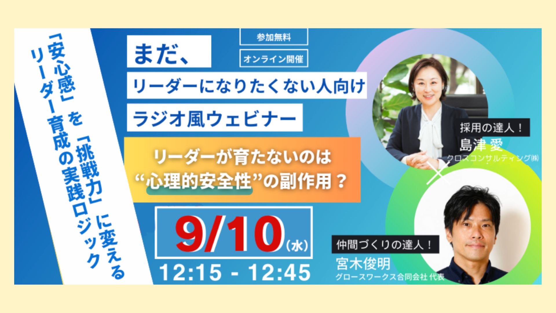 まだリーダーになりたくない人向け ラジオ風ウェビナー『リーダーが育たないのは“心理的安全性”の副作用?』 ~「安心感」を「挑戦力」に変えるリーダー育成の実践ロジック~(全3記事)