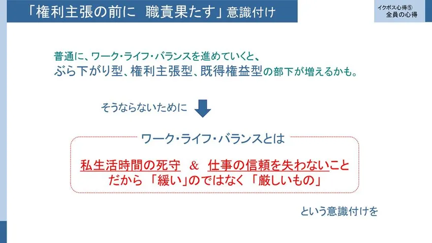 特にリーダーの人がそのあたりに対して許容するとか、うまくいかなかったらしっかり尻拭いするとか、フォローするとか、「みんなで考えようぜ」というふうに持っていくとか。そういう前向きな姿勢がまず大事かなと思いますね。