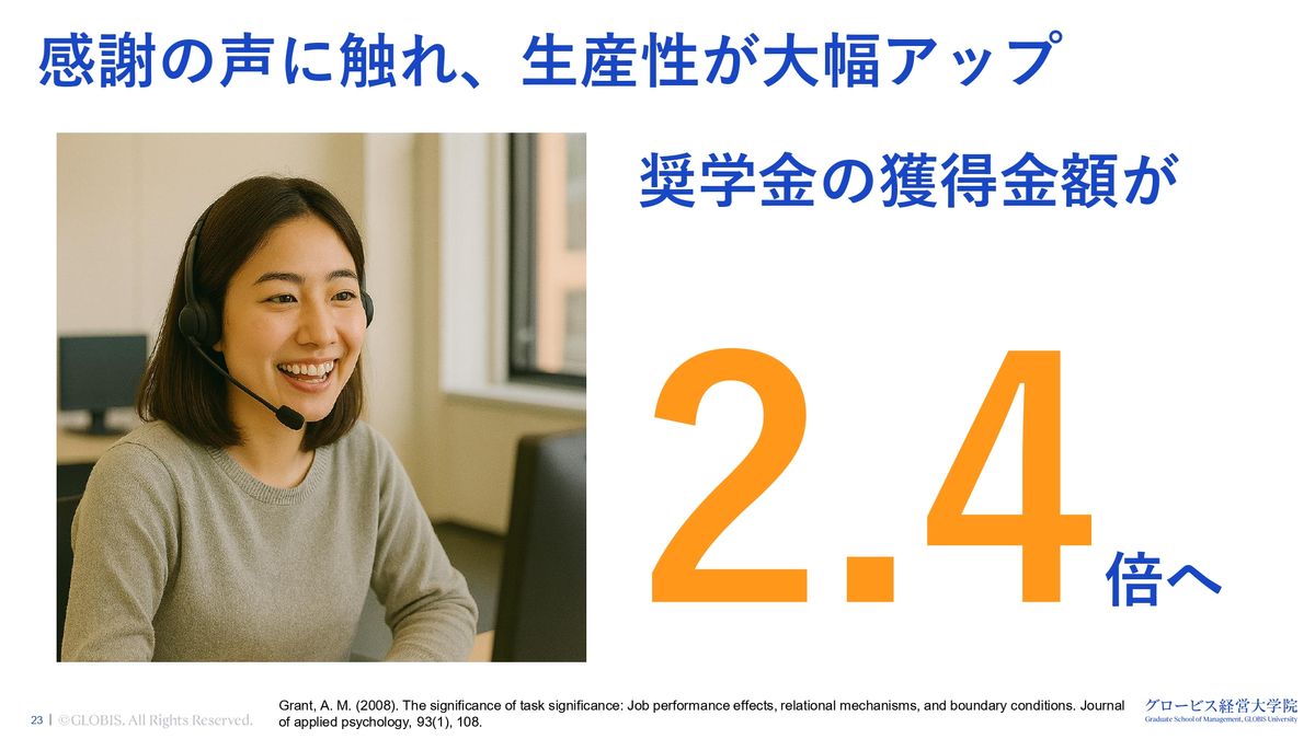 【3行要約】・職場のモチベーション向上には「仕事の意味を見せる」という小さな工夫が大きな効果を生み、コールセンター業務では奨学金受給者の声を共有するだけで成果が2.4倍に向上しました。
