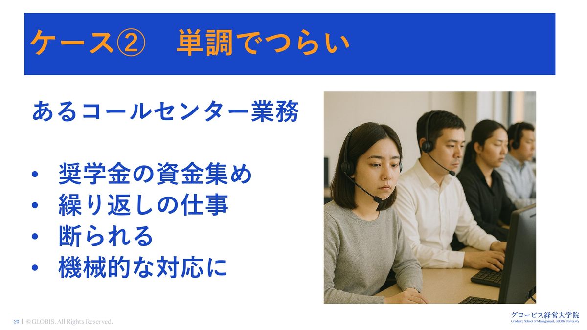 「もしもし、こんにちは」という繰り返しです。けっこうモチベーションが下がりやすいタイプの仕事でした。さぁ、みなさんだったら、このコールセンターのスタッフをどうモチベートしますか?