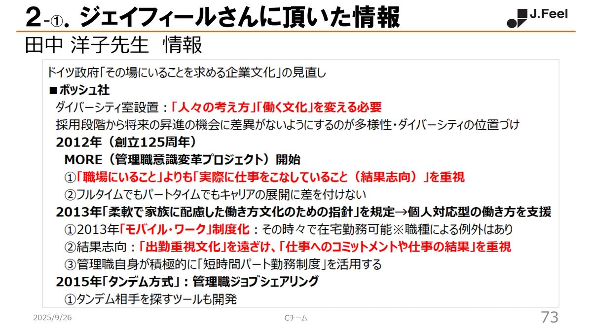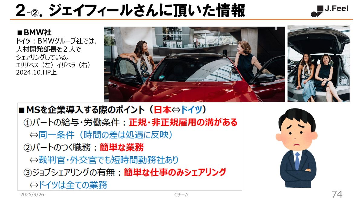また、先ほどお話がありましたように、BMWでは私と同じ人材開発の担当者である2人の女性が、短時間勤務でマネジメントシェアリングしているんですね。ぜひ、みなさんもBMWのホームページをご覧いただきたいと思います。