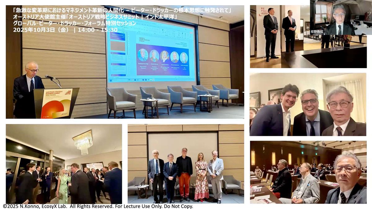 いずれにしても、ドラッカーの業績と今後の可能性は、世界中で今なお注目されています。先週も東京でオーストリア大使館主催の「オーストリア戦略ビジネスサミット(Austrian Strategic Business Summit)」が開かれ、その一部として「ドラッカー・フォーラム」の特別セッションが行われ、私も登壇しました。