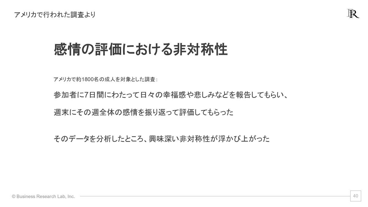 ですので、途中で起こったポジティブな出来事とかポジティブな感情を及ぼした経験というのは、実はそんなに覚えていないんですよね。