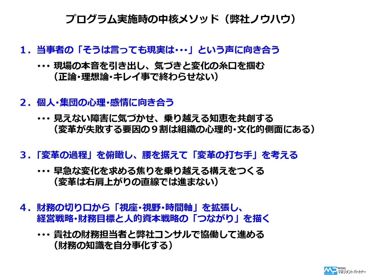 さらにその中核のメソッドがあります。もう少し小さいサイズのノウハウになっていくんですが、これは共通です。どの層にも「特にこういうことを強調して進めていきますよ」と我々が伝えているノウハウです。これも今回はすべて開示します。