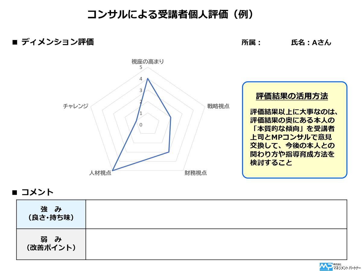 そういうかたちで視座・視野を広げていくことをやるんですけれども、1つ違いがあるのは、個人評価もやりますが、このクラスになりますと、組織診断というものの活用をかなりします。