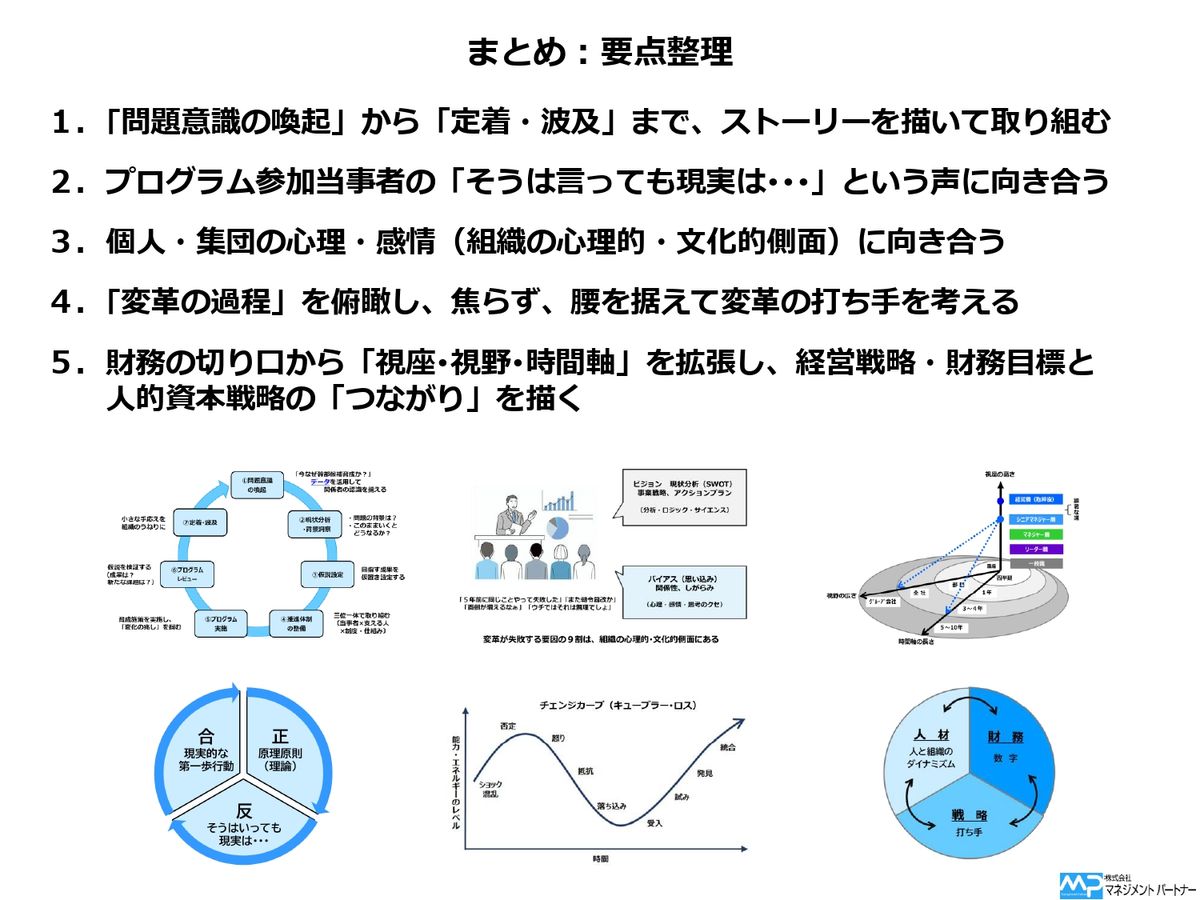 それを(事業)戦略と人材戦略と財務目標という3つのつながりを持ちながら進めていく。その時に抵抗感が出てきます。だからこそ変化の抵抗に関する過程、このプロセスを俯瞰しながら進めていく。