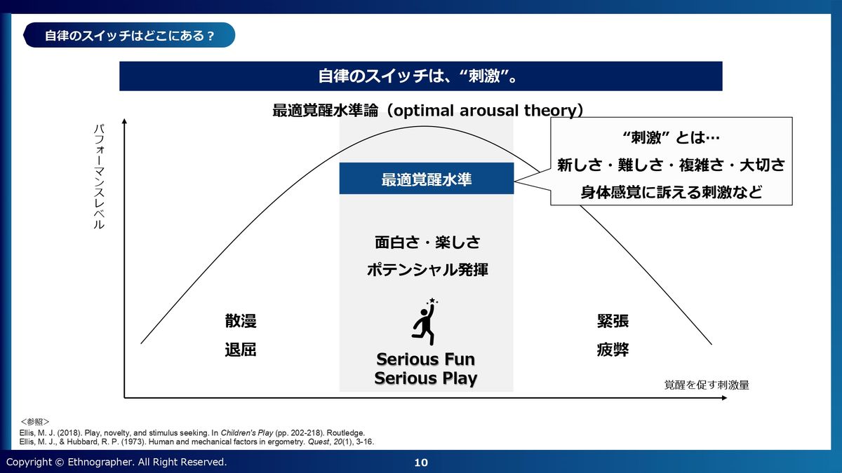 キーワードは何なのかというと、刺激なんですよね。人のポテンシャルがどのように引き出されていくのかを研究している研究者はたくさんいますが、その中にM・J・エリスという、『Why People Play』の著者で、人はなぜ遊ぶのかを研究している人がいます。