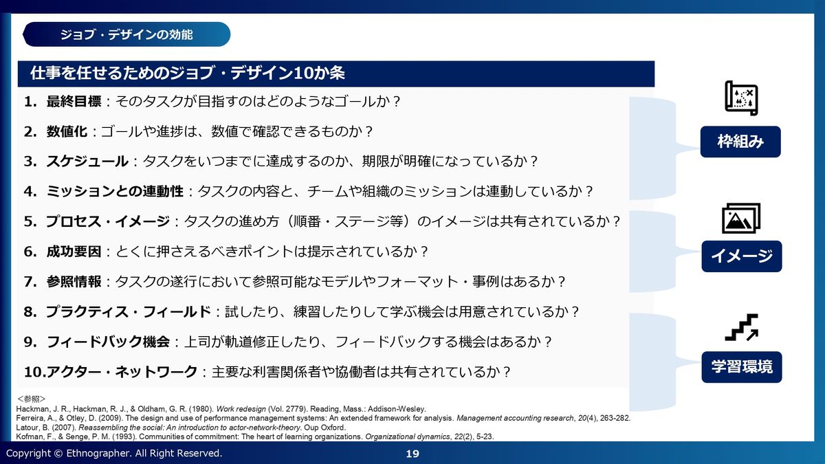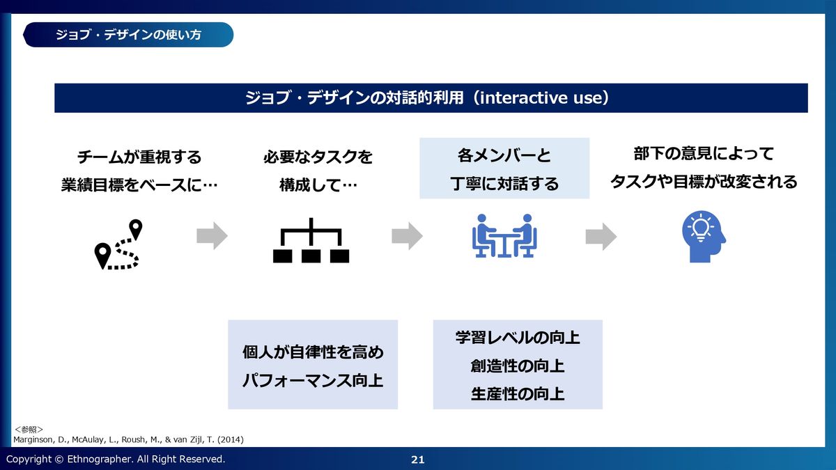 そのためにはジョブ・クラフティングとかジョブ・デザインとか、あとは対話的な利用ということで、対話を重視したジョブ・デザインの運用が求められるよという話をさせていただきました。