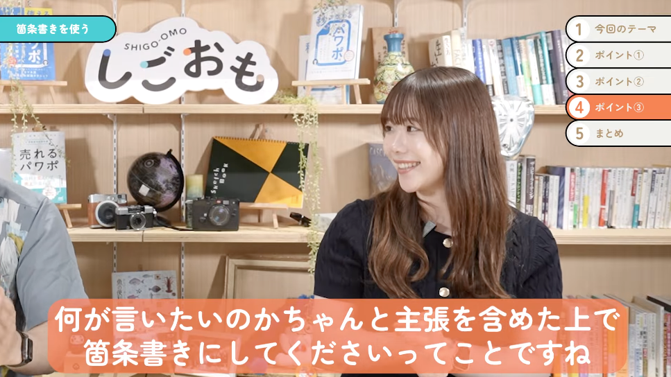 岩本:何が言いたいのか、ちゃんと主張を含めた上で箇条書きにしてくださいってことですね。