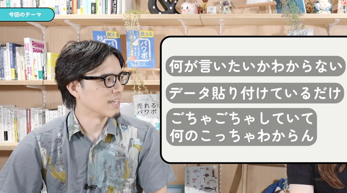 豊間根:なかなかね。何が言いたいかわかんねぇとか。データをただ貼り付けてるだけとか。ごちゃごちゃしていてなんのこっちゃわからんみたいな。そういうお悩みを持っている方、多いと思います。