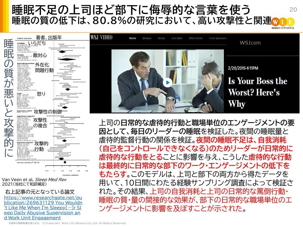 これは『ウォール・ストリート・ジャーナル』に掲載された論文データですけれども、睡眠不足の上司ほど部下に侮辱的な言葉を使うというデータが出ています。