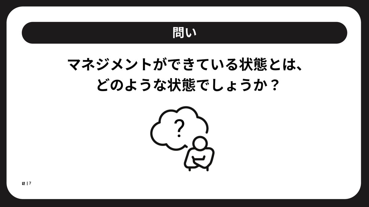 みなさんにここで問いたいのは、「マネジメントができている状態とはどういう状態でしょうか?」ということです。ぜひお願いします。