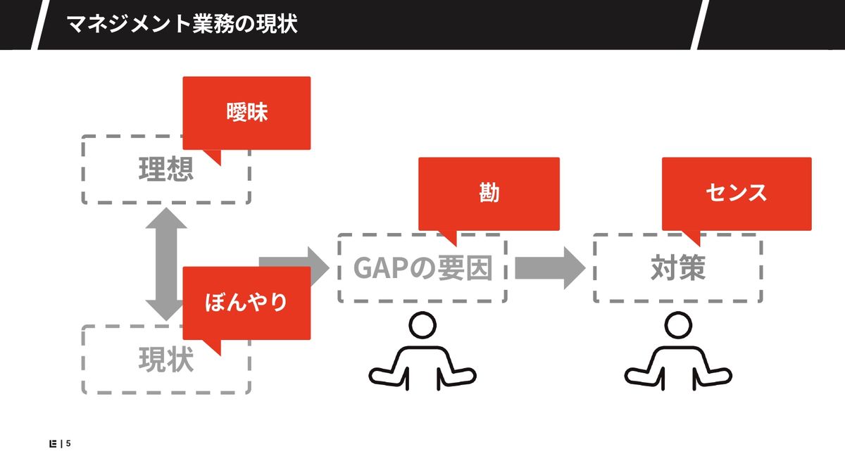 マネジメントの理想状態って非常に多義的で曖昧なので、理想状態が言語化できないのであれば、認識すべき現状もすごくぼんやりしちゃうと思うんですね。