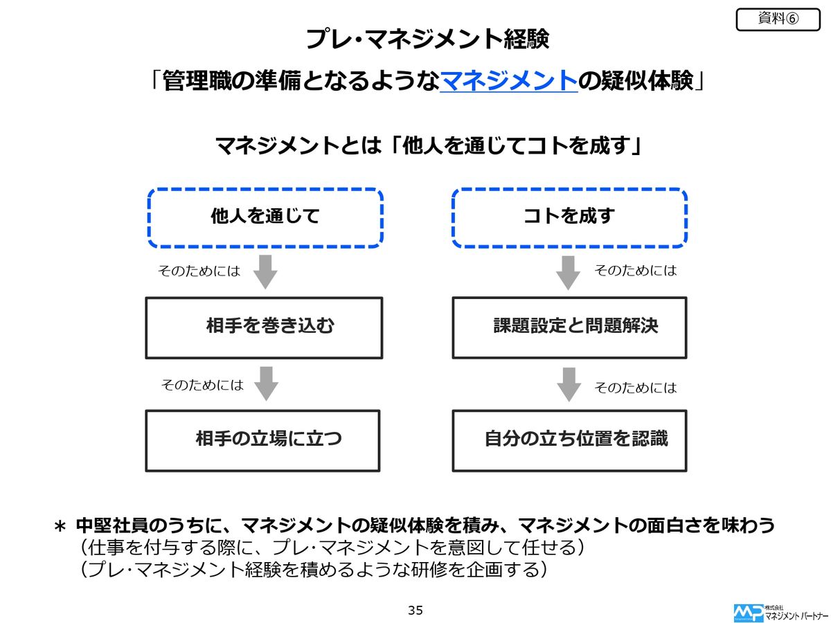 その割り当てられた仕事、やり切る経験、この経験を乗り越えられるように研修を企画するといった工夫をしたんです。つまり、プレマネジメント経験を意図的に積ませることに重点を置きました。