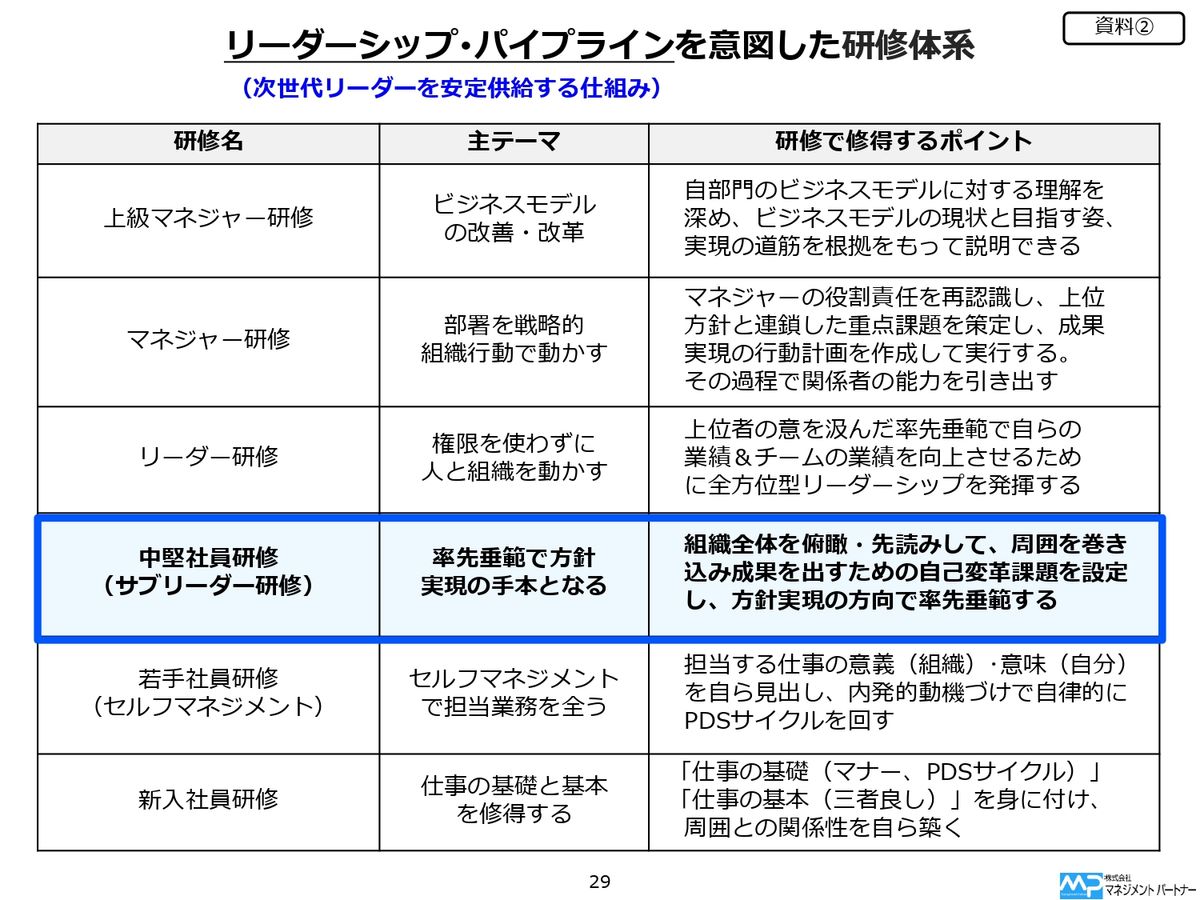 リーダーシップ・パイプラインを意図した研修体系に変更