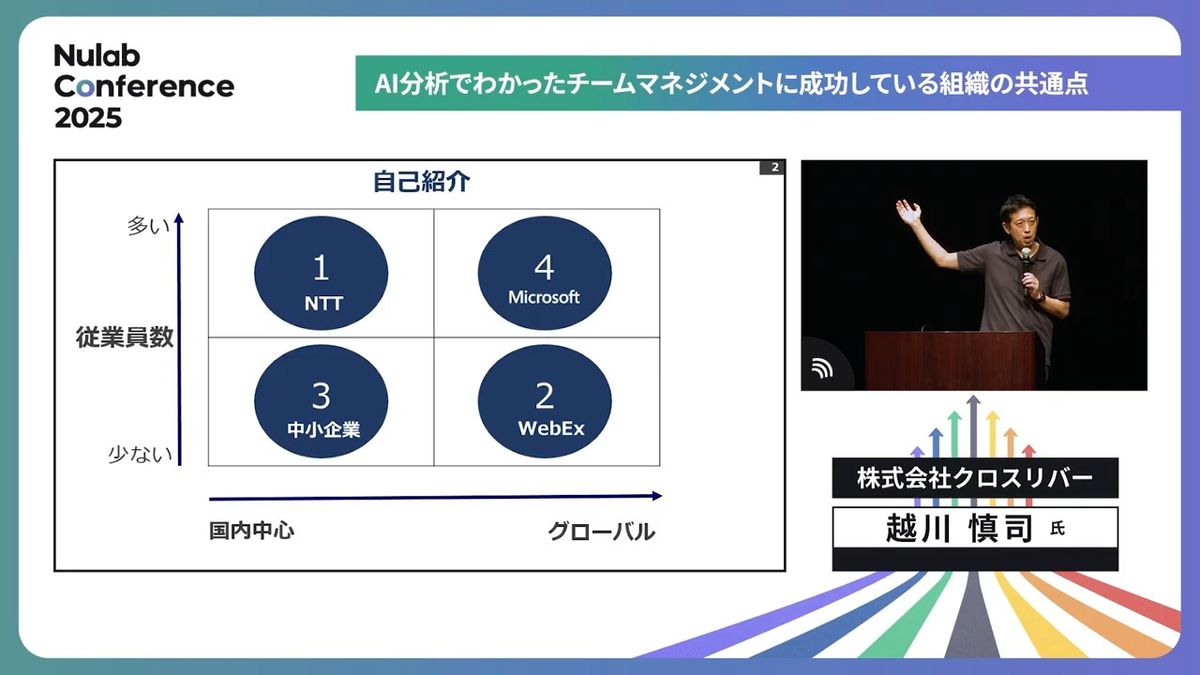 ・越川慎司氏は815社の調査から「中間管理職の労働時間は2019年から17パーセント増加している」と指摘し、その原因はチームの自律性の欠如にあると分析。