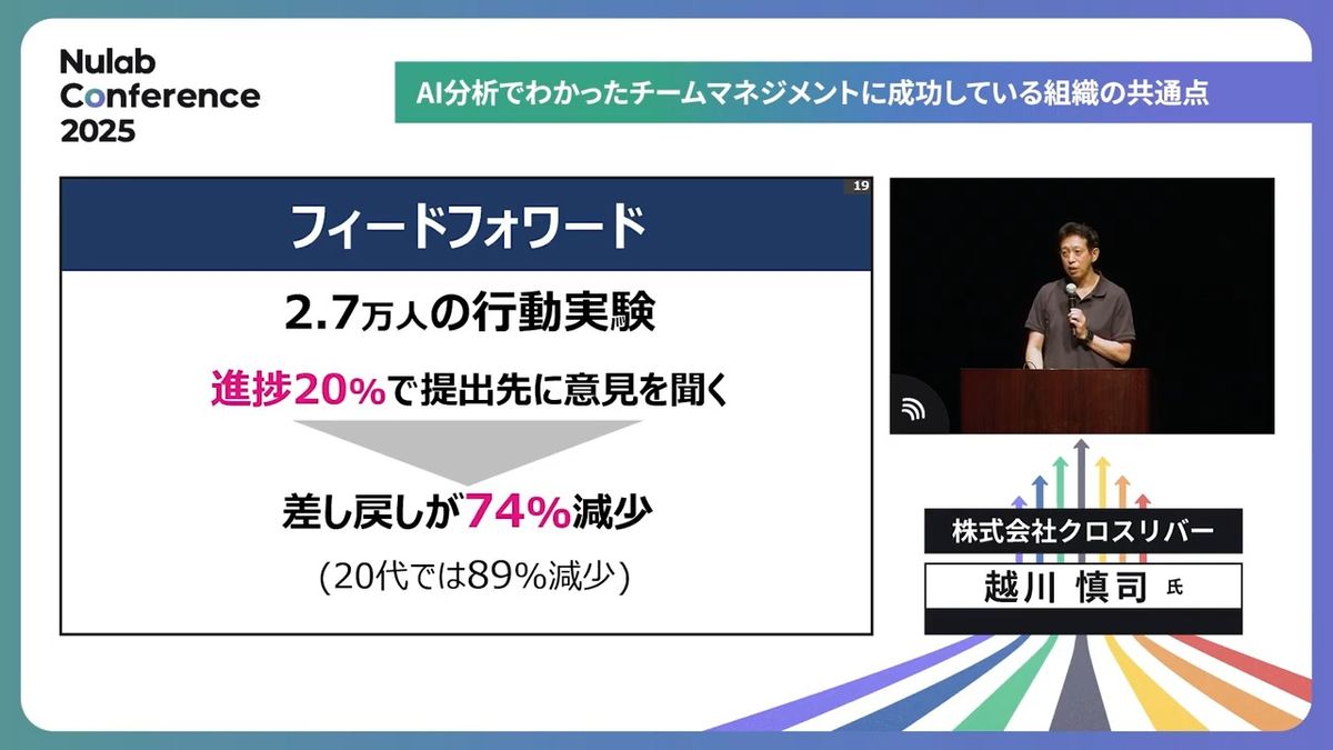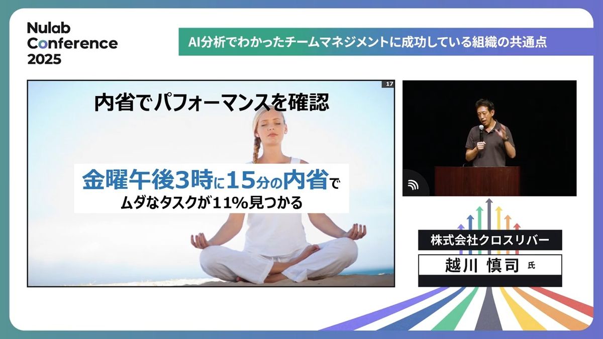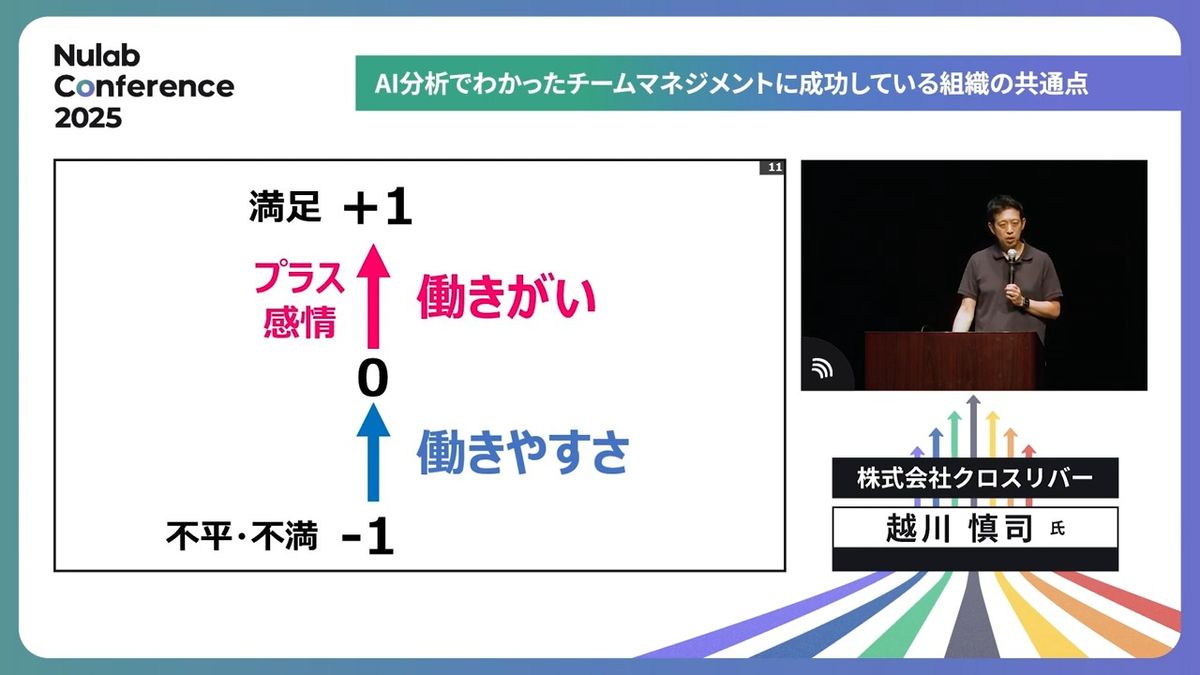 これをやると働きがいが感じられやすい、達成がしやすい、満足度が得やすいというメカニズムが、8年半のAI解析でわかったんです。