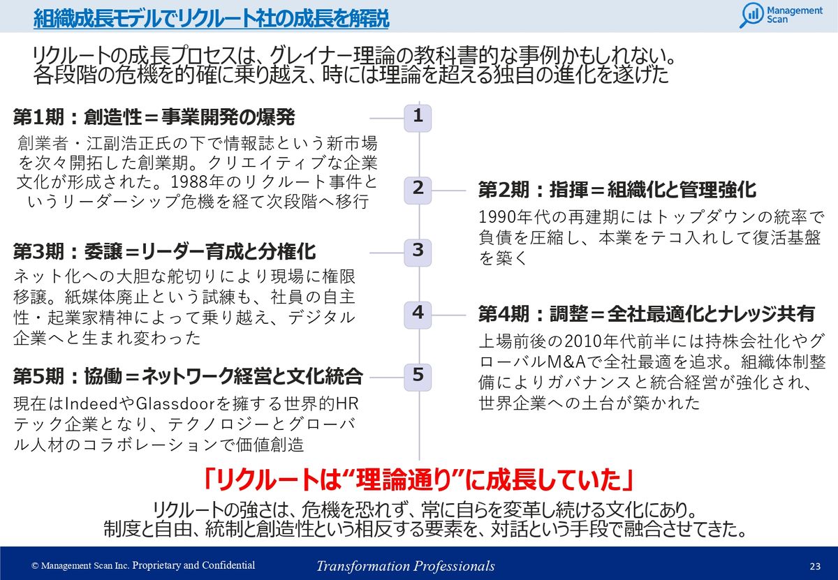 結論としましては、取って付けた意味じゃないんですけど、リクルートの成長プロセスはグレイナー理論どおりだなとあらためて思いました。