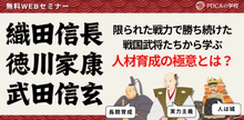 ではあらためて、今回は「戦国武将から学ぶ 限られた戦力で勝ち続ける人材育成の極意」ということで、織田信長から学ぶ評価制度と、武田信玄から学ぶ組織作りと、徳川家康から学ぶ育成の分野をお伝えできればなと思っております。