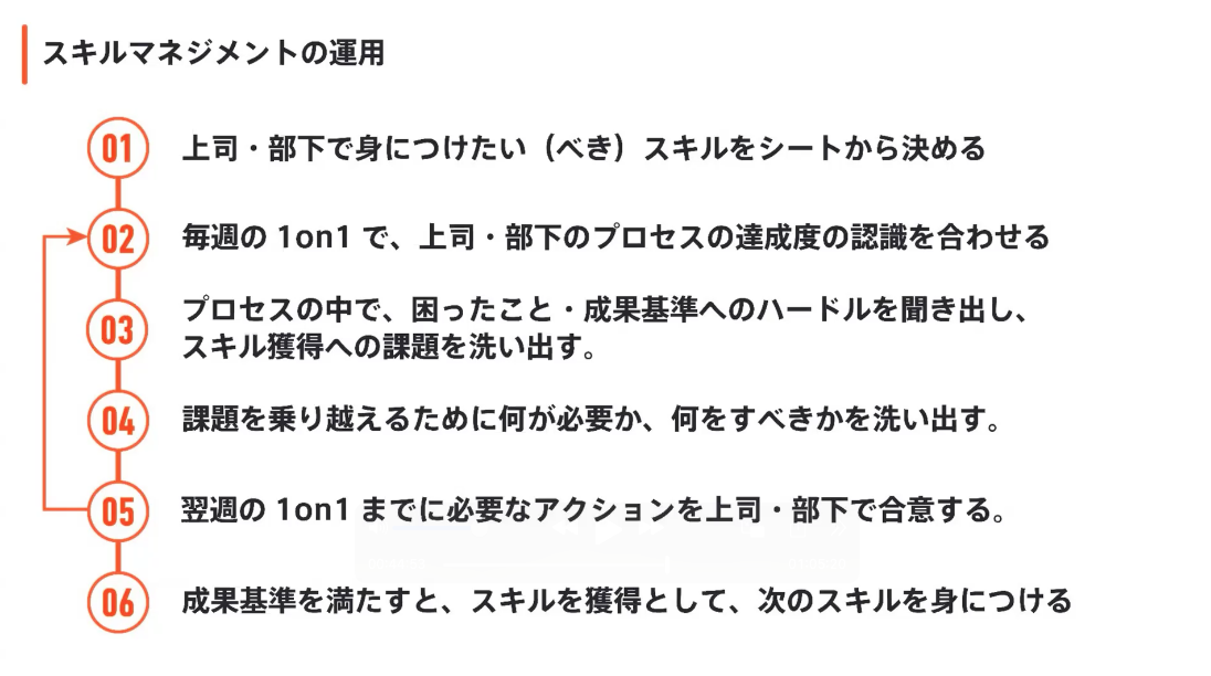 要は、そもそもマネージャーのスキルに頼らずに、「こういったスキルが組織として必要である。それを獲得するためにはこういったことをしたほうがいい」と定義しておく。すると、仮に今、マネージャーの方の力量がまだあまりなかったとしても、部下やメンバー育成が組織の仕組みとしてできるようになります。これがおすすめの取り組みとなっております。