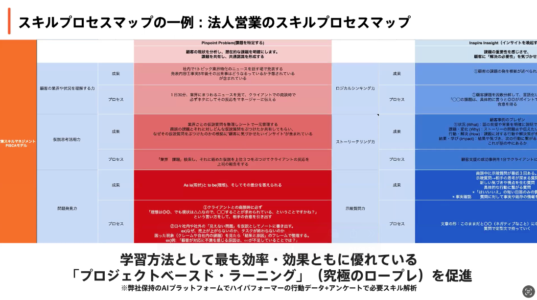 それに対して、やろうとしている目的自体はすばらしいなと思っています。こういったかたちでスキルプロセスマップを作るというのが、まさに2つ目のコアの部分なんです。
