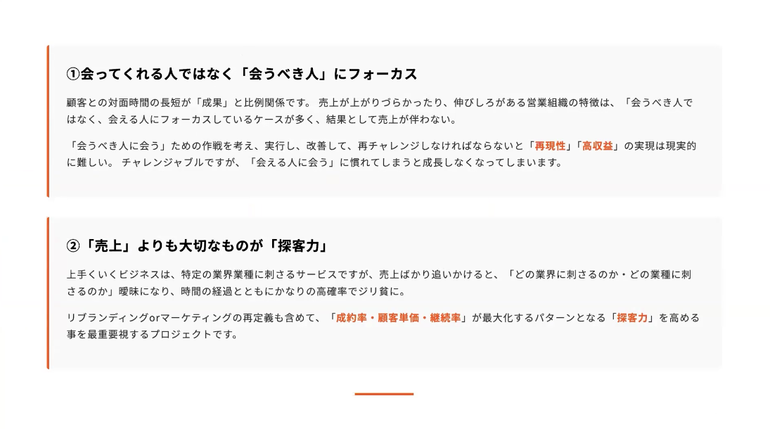 ちょっと営業っぽい話で恐縮なんですけども、「会ってくれる人、会いやすい人」ではなくて「ちゃんと会うと効果が出る、会いづらいけども会うべき人」にフォーカスをするのはなかなか難しいです。