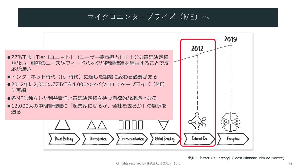 「それだと本当にインターネット時代に、お客さんに一番近いところに価値に出すってできないじゃん」っていうことに直面した結果、さっき言ったマイクロエンタープライズっていうのに変わったのが2012年。