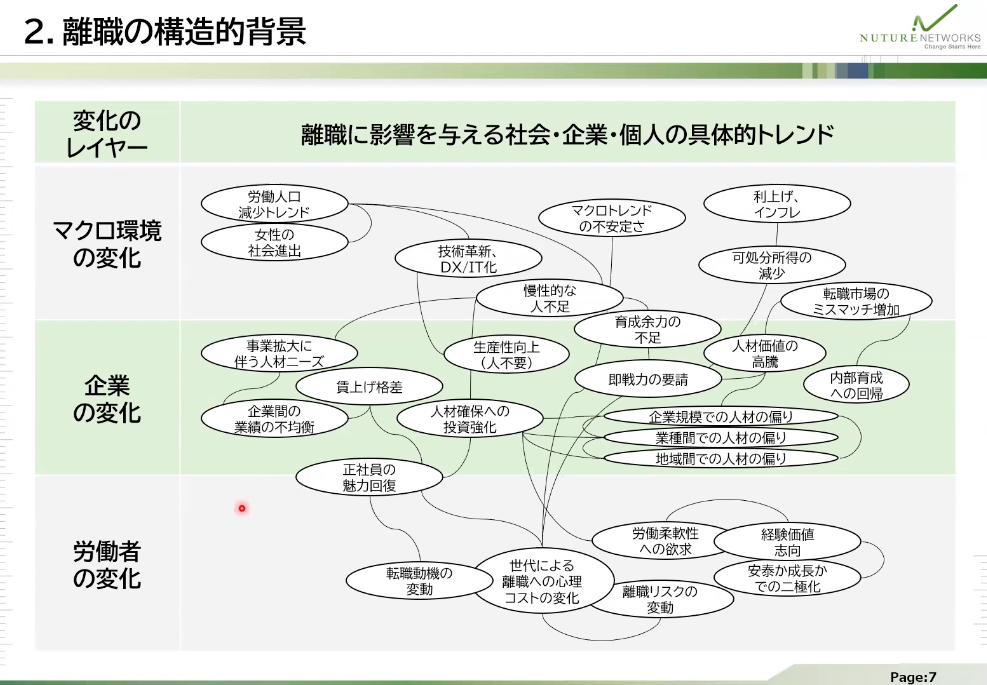 張:そうですね。いろいろあるんですけれど、まず離職構造を段階的に分けると、ほとんど構造的に捉えることができるので、ここからは、実際の私どもの取り組みも含めて具体的に見ていこうかと思います。